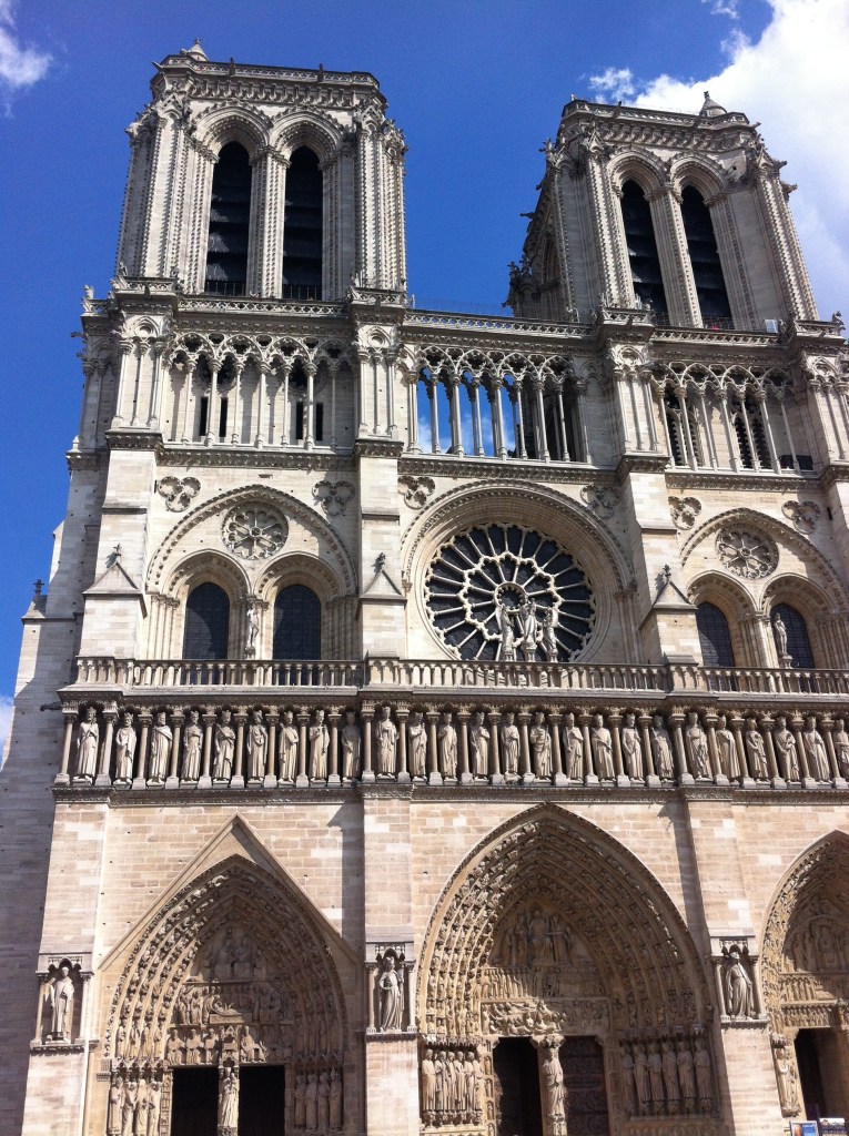 Notre Dame. Omdrejningspunktet for Victor Hugos gotiske drama om klokkeren Quasimodo og hans elskede Esmeralda. Smuk katedral i hjertet af Paris og en katolisicmens helt store helligdomme.